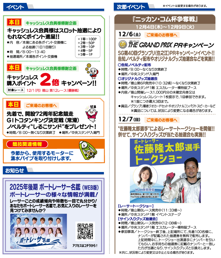 (本場)ニッカン・コム杯争奪戦(2025/12/4~2025/12/9)注目イベント!!