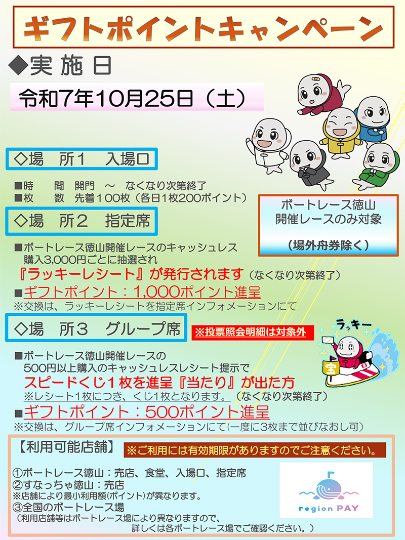 徳山本場で、徳山開催レースのキャッシュレス投票2,000円分ごとに、抽選で"お米引換券"が当たります。