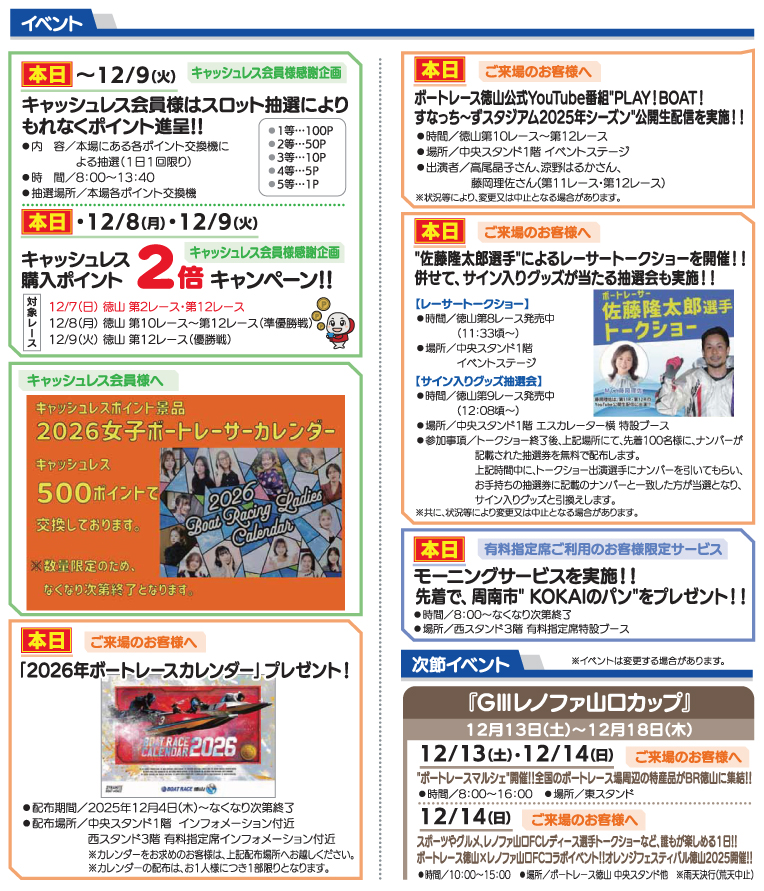(本場)GⅢレノファ山口カップ(2025/12/13~2025/12/18)注目イベント!!