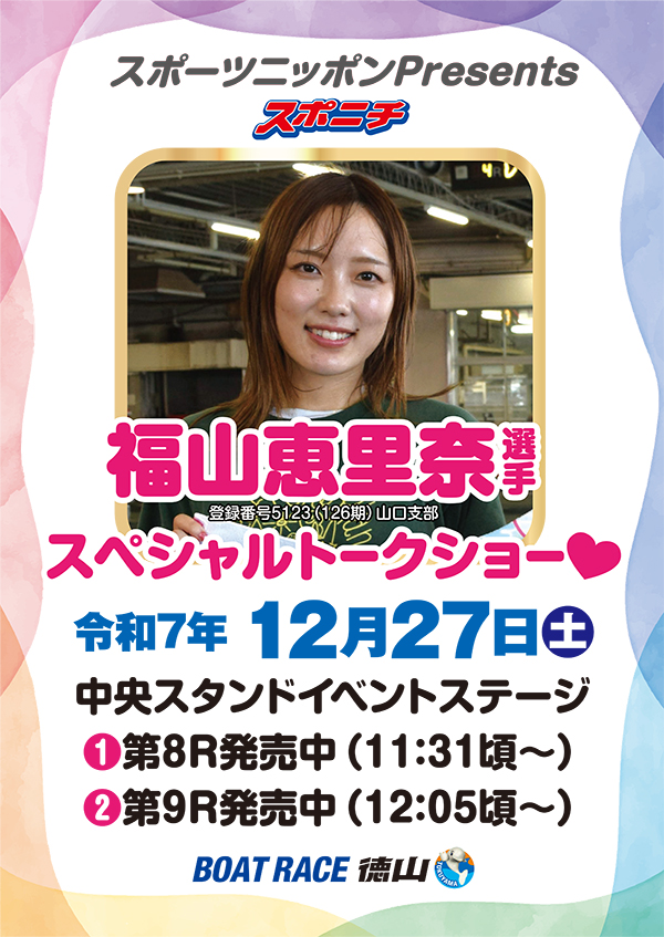 ご来場のお客様へボートレース徳山公式YouTube番組"PLAY!BOAT!すなっち~ずスタジアム2025年シーズン"公開生配信を実施!!