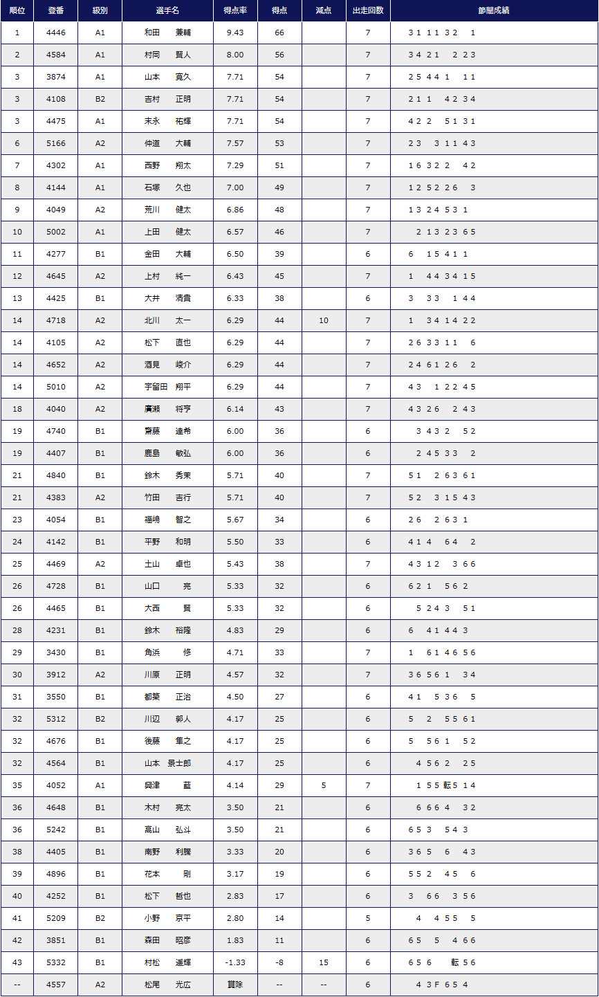ニッカン・コム杯争奪戦 予選最終日までの得点率ランキング