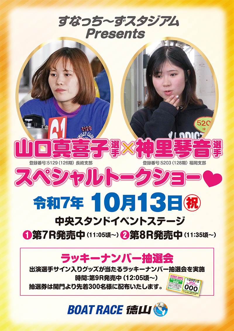ご来場のお客様へボートレース徳山公式YouTube番組"PLAY!BOAT!すなっち~ずスタジアム2025年シーズン"公開生配信を実施!!