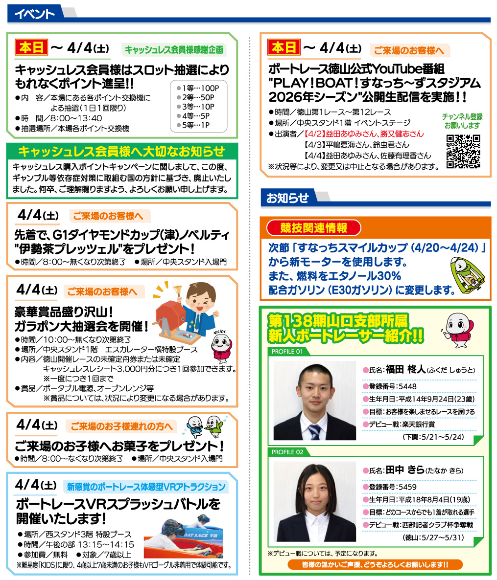 日頃より、ボートレース徳山及び徳山すなっちポイントクラブをご利用いただき、ありがとうございます。